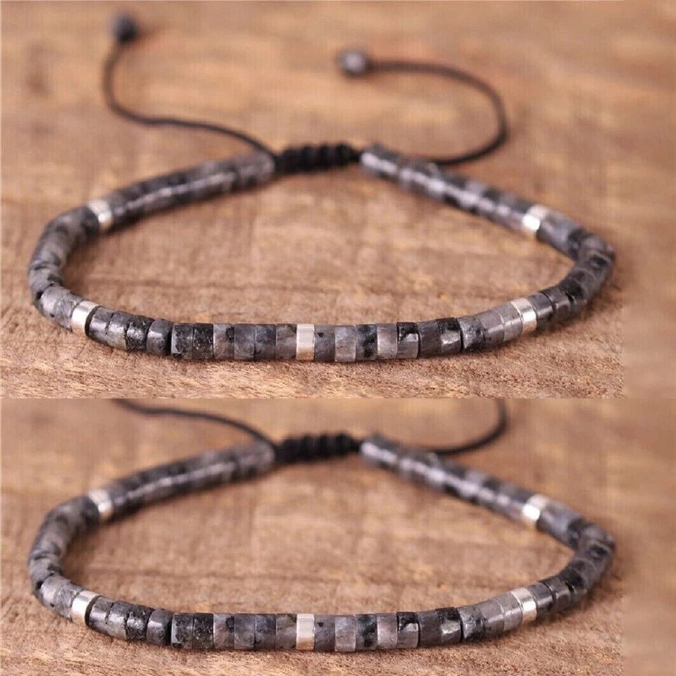 2PCS Natural Labradorite Stone Beaded Bracelet Men's Braided Bracelet Handmade#