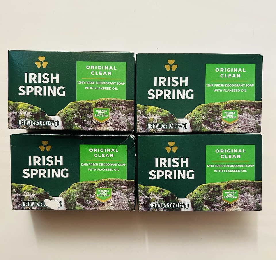 Irish Spring Bar Soap With Flaxseed Oil, Feel clean, smell serene 4pcs