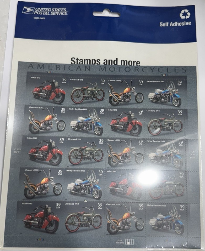 AMERICAN MOTORCYCLES USA 2005 Stamps Full Sheet Original Unused Mint MNH Sealed