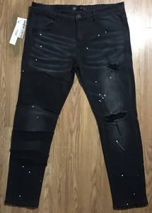 KDNK Mens Size 38 Distressed Black Paint Splatter Denim Jeans Skinny Stretch NWT