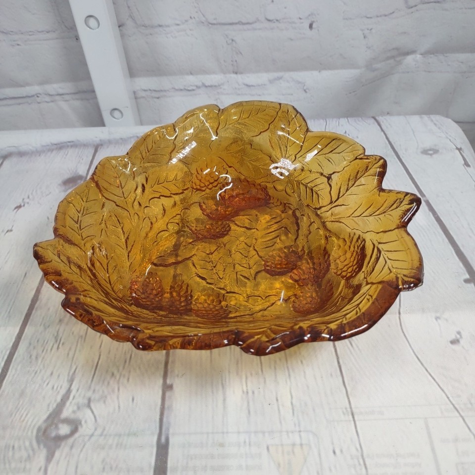 Vintage Indiana Glass Loganberry Pattern Amber Gold Candy Dish Bowl
