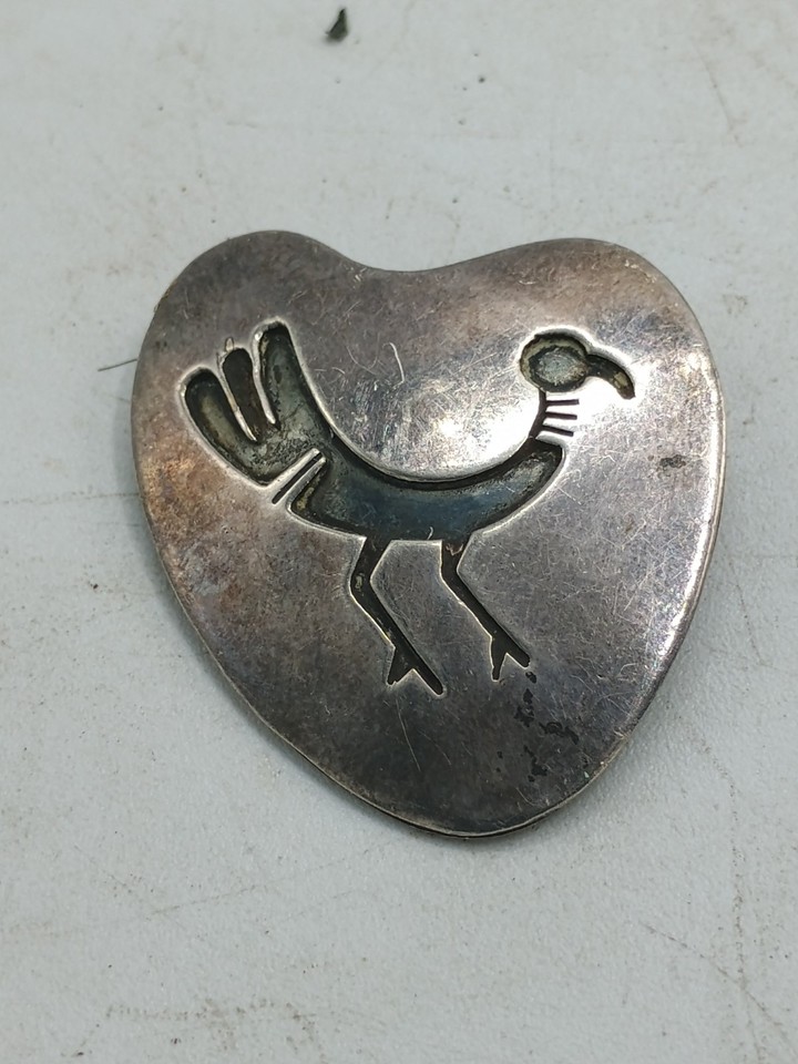 Southwest Indian Silver Broach With Image Of A Bird In It Tested No Maker Mark