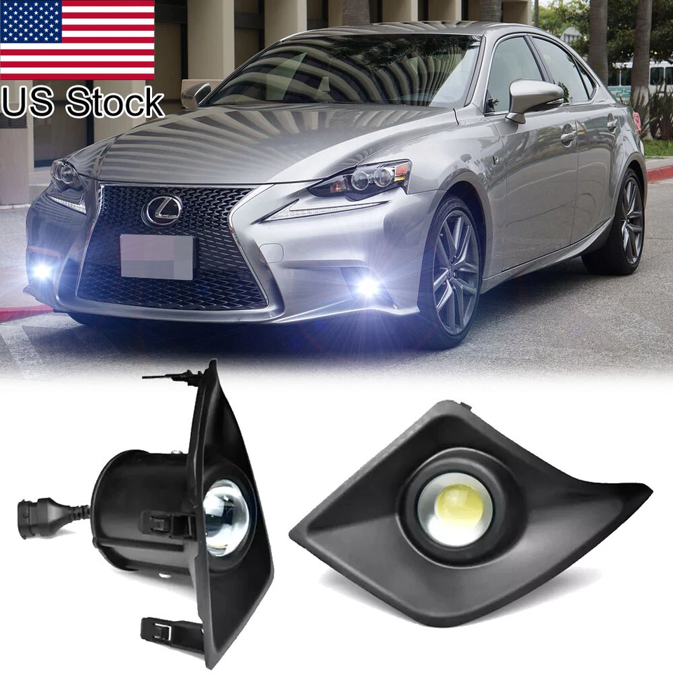 2x Direct Fit JDM Projector White LED Fog Light Kit For 14-16 Lexus IS F-Sport