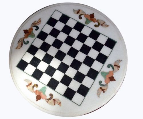 12" Marble Chess Table Pietra Dura Semi Precious Stone Craft Home Furniture