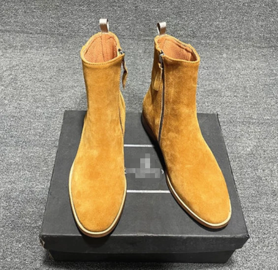 Men's British Chelsea Ankle Boot Size Zip Fur Lining Suede Leather Shoes 37-47