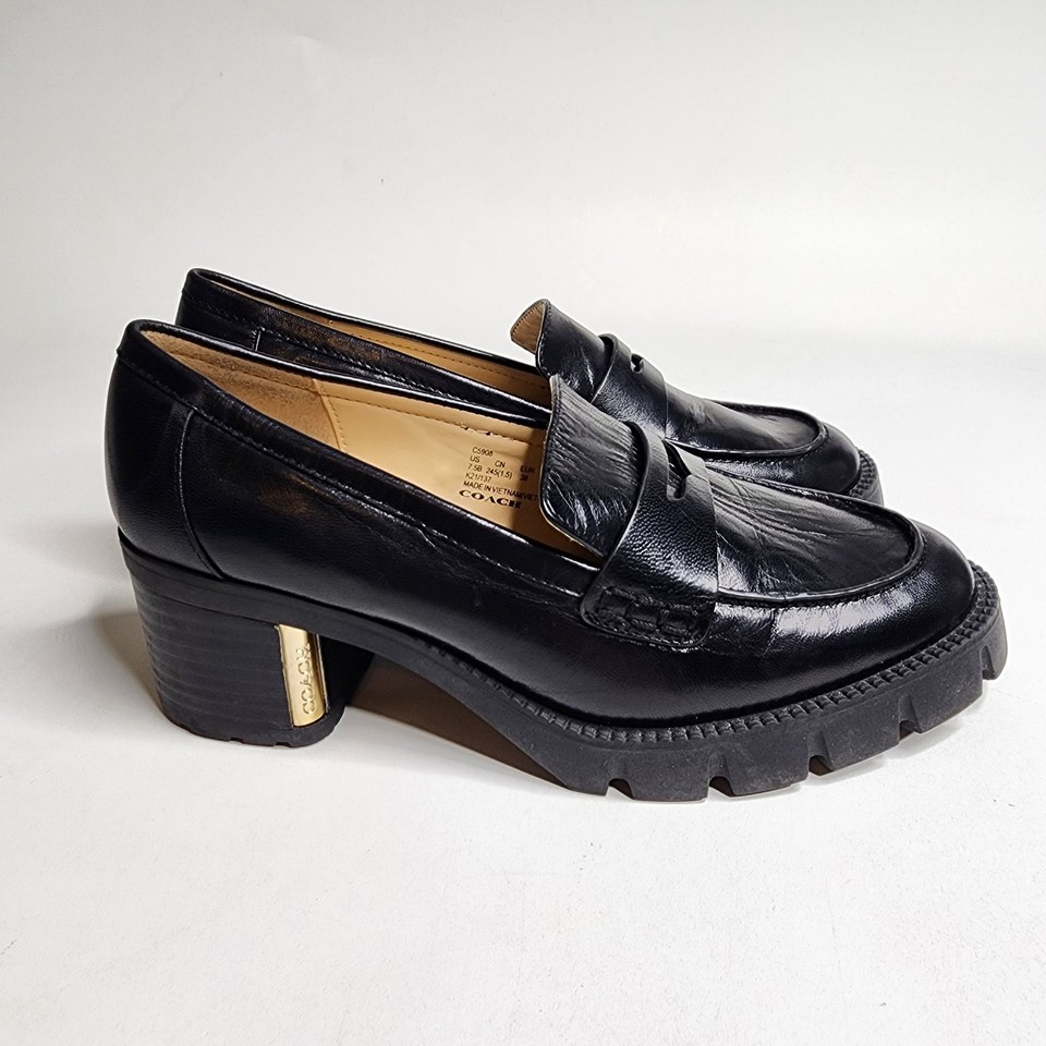 Coach Cora Loafer Pump Black Leather Chunky Heel Round Toe Slip On Size 7.5 B