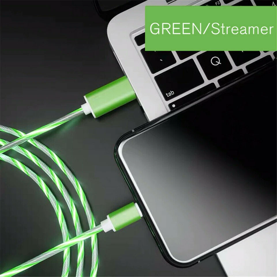 For Samsung Type C USB Charger Flow LED Light Fast For Apple Charging Cable Cord