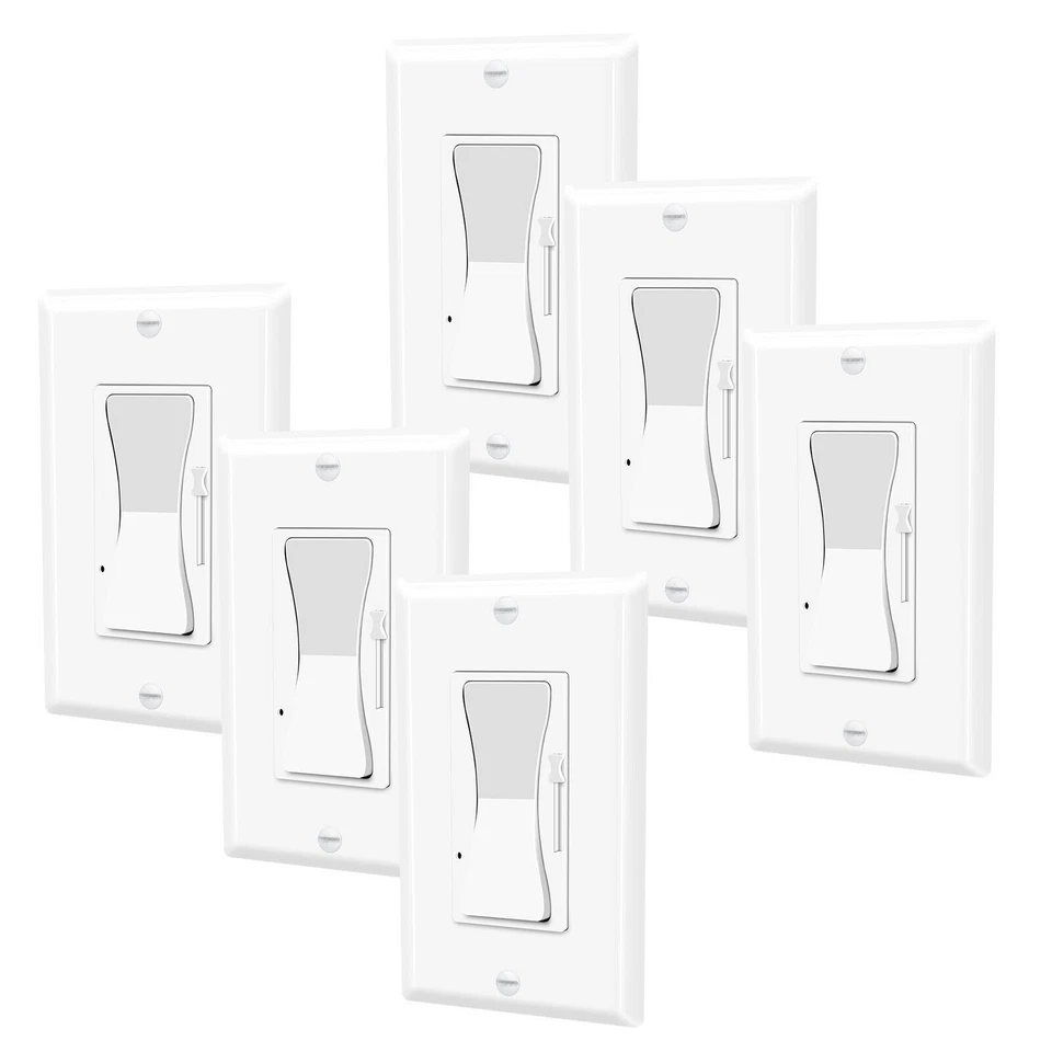 6 Packs LED Decora Rocker Dimmer, Single & 3-Way Switch, CFL 600W / LED 150W