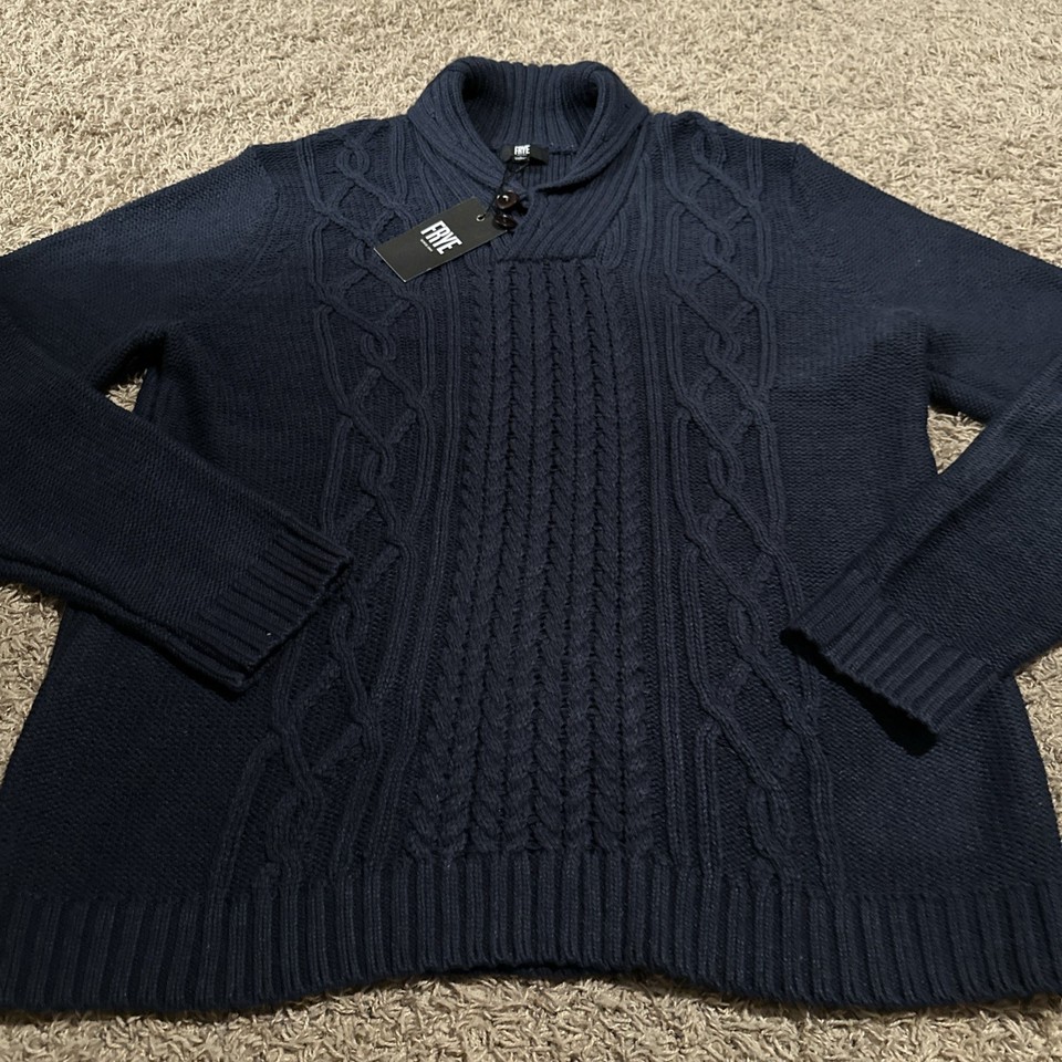 New Frye Mens Collared Cable Knit Henley Sweater NWT $99 Size Large - True Navy