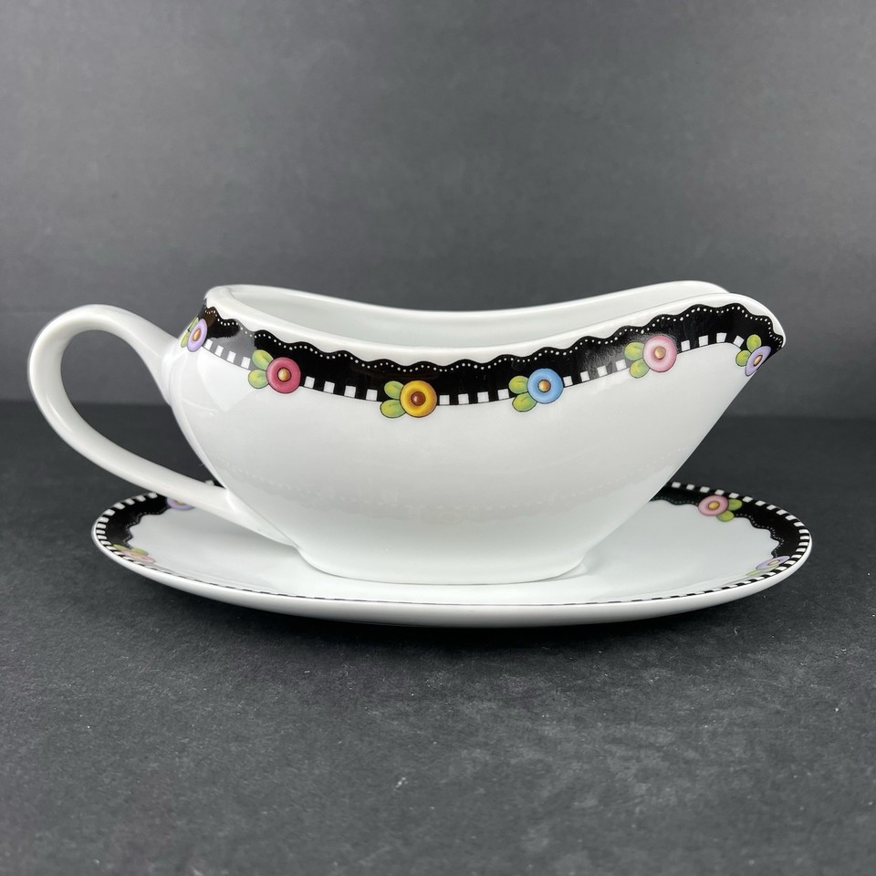Vintage Mary Engelbreit Love Home Family Friends Gravy Sauce Boat & Underplate