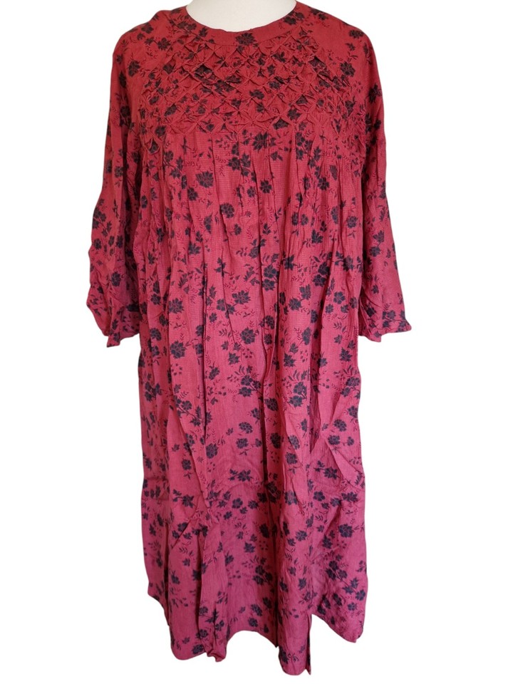 Ex Fat Face Red Floral Smocked Shift Dress Size 12