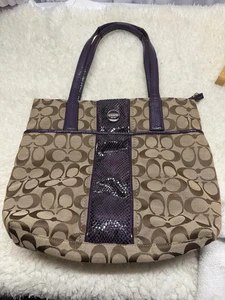 Coach Signature Canvas Purple Croc Trim Gold Signature Tote