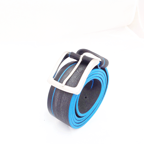 CINTURA UOMO IN PELLE VERO CUOIO EFFETTO GRAFFIATO NERO A STRISCE BLU 08/18