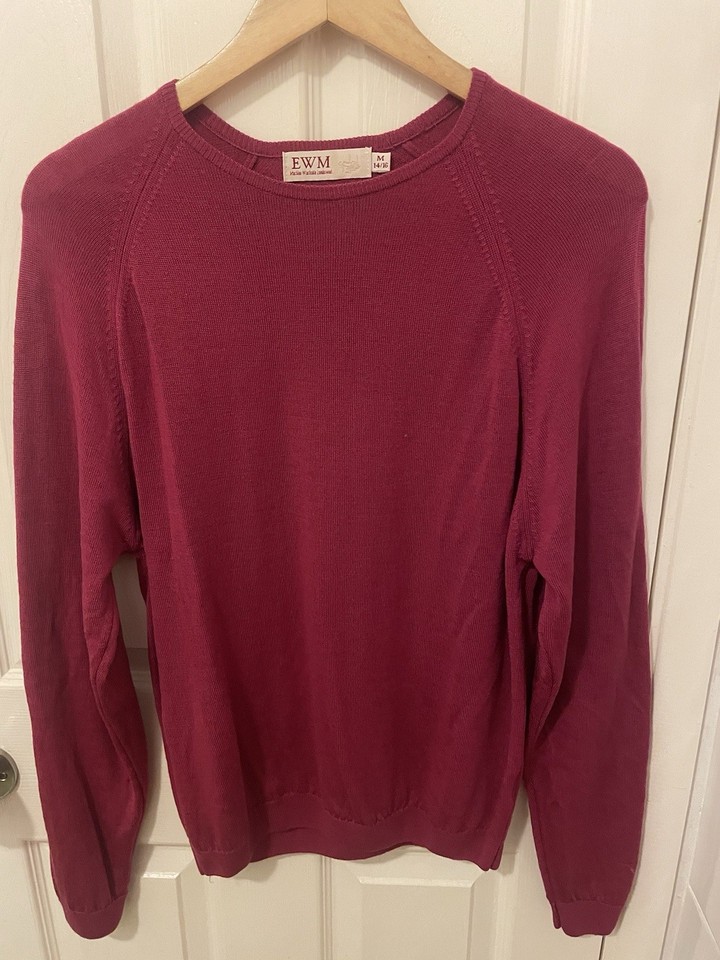EWM Womens Pure Classics Burgundy red Jumper Pullover Size M uk 14-16 LAMBS WOOL