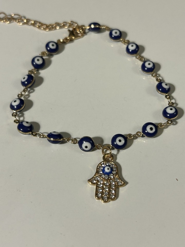 Hamsa Hand Evil Eye Gold Toned Anklet Adjustable