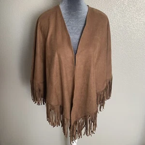 Chico’s Women’s Brown Coated Faux-Suede Fringed Poncho Wrap