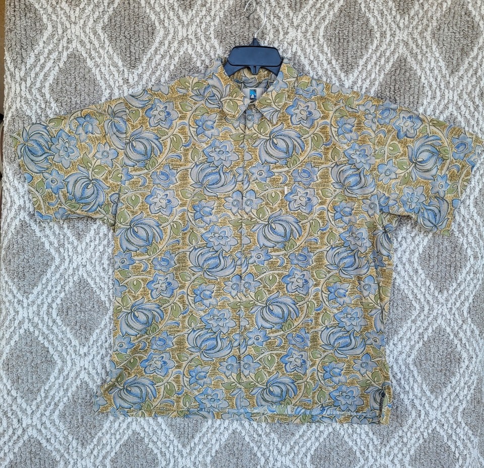 Kahala Hawaiian Camp Shirt Mens XL Green Floral Tropical Aloha Cotton Beach