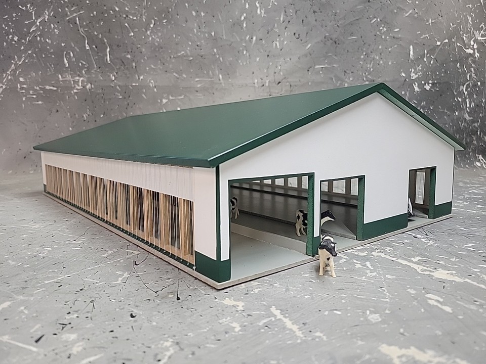 1/64 Custom scratch built FreestallBarn W/Feeding Alley Floor ForestGreen&Wh ite