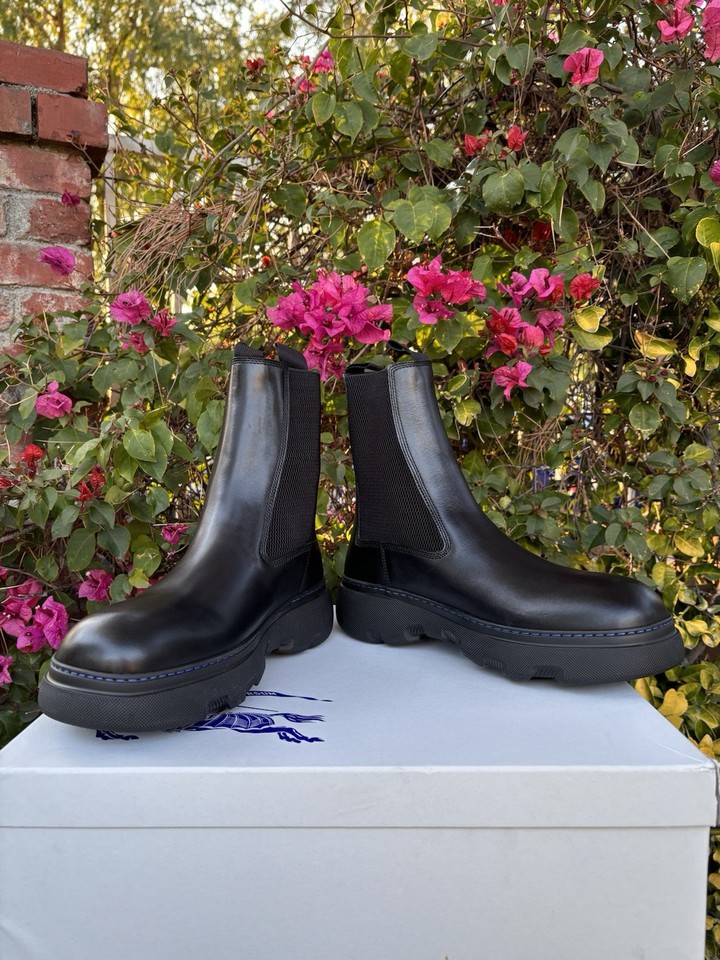 NIB $1290 Burberry Creeper Leather Chelsea Boots Black Sz 42.5 US 9.5
