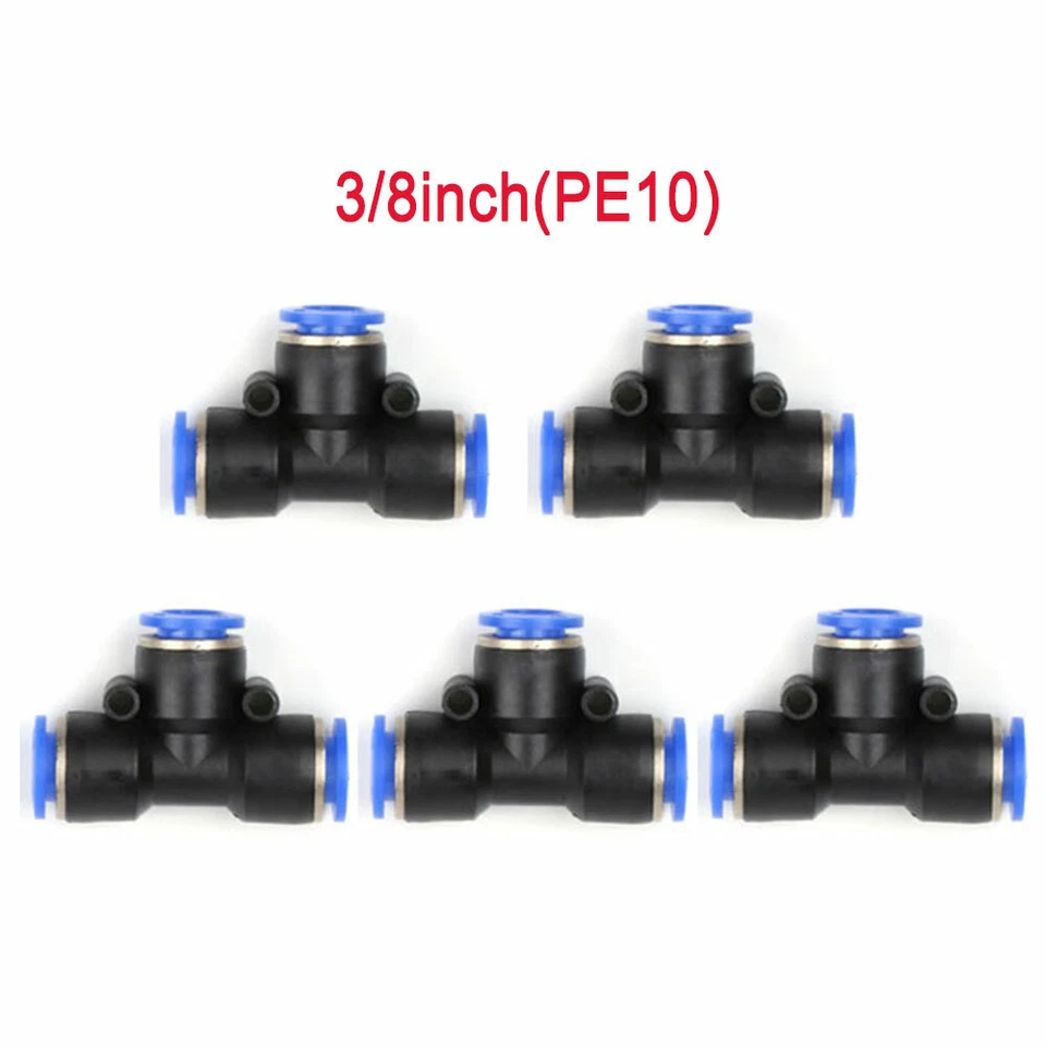 5Pc Tee Union Pneumatic Tube OD 3/8"(10mm) Push In Air Fitting Connector PE10