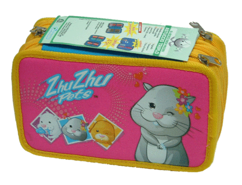 ASTUCCIO TRIPLO 3 SCOMPARTI 3 ZIP SCUOLA ELEMENTARI COMPLETO ZHU ZHU PETS