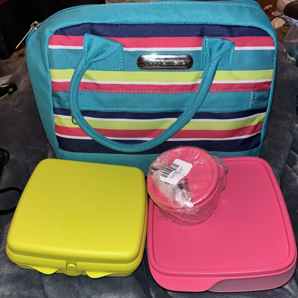 NEW Tupperware Summer Lunch Bag Striped with Lunch containers