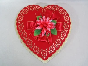 Vintage Valentine Heart Chocolate Candy Box Red Pink Floral Satin 14.75" w/ Box