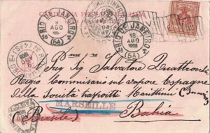 ITALIE - GENOVA OBLITERATION DRAPEAU POUR BAHIA BRESIL POUR LE COMMANDANT DU BAT