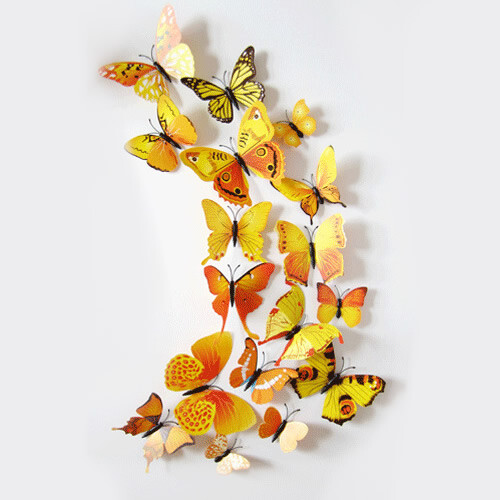 12PCS 3D YELLOW Butterfly Wall Stickers Art Decal DIY Decor Removable Stickers