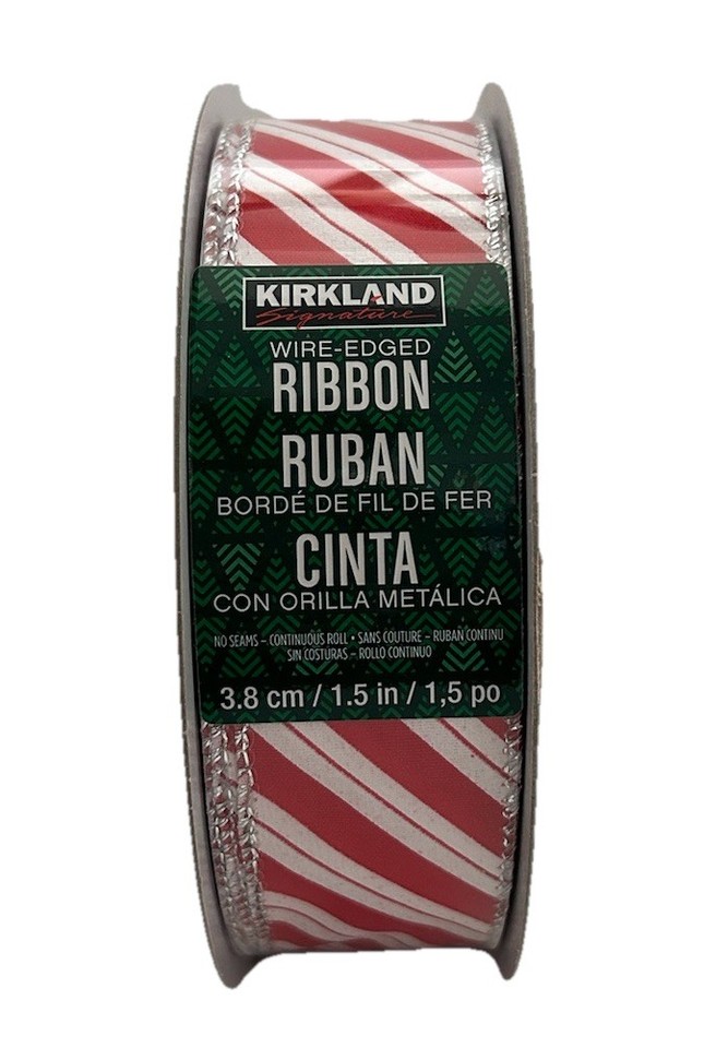 Kirkland Wire-Edged Ribbon 1.5" Wide 50 YD Red & White Candy Cane Striped Ribbon