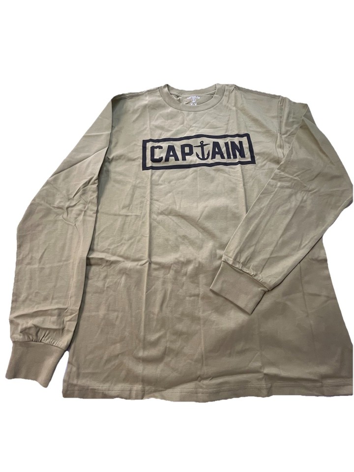 NEW Medium Captain Fin Green Long Sleeve T-Shirt | Boat Captain Anchor Graphic