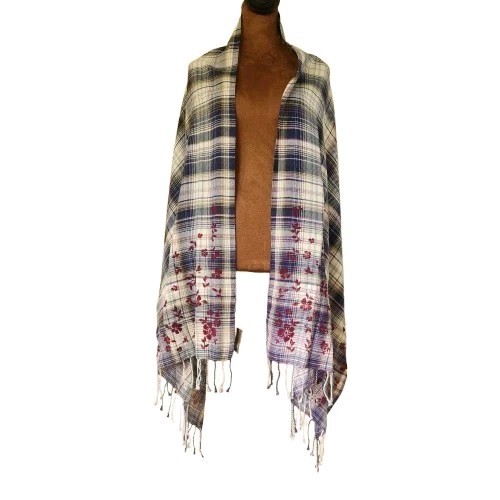 NWT New J.Jill Scarf Plaid Velvet Floral Large Finge Fall Multicolor Bohemian