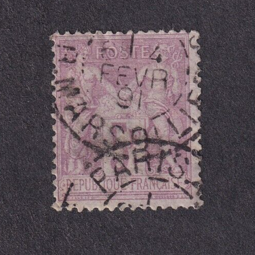 “USED FRANCE SCOTT #96, (5-FRANC, "PEACE AND COMMERCE", VIOLET ON LAVENDER, 1877-1880), WITH TOWN & ”... Read moreabout condition