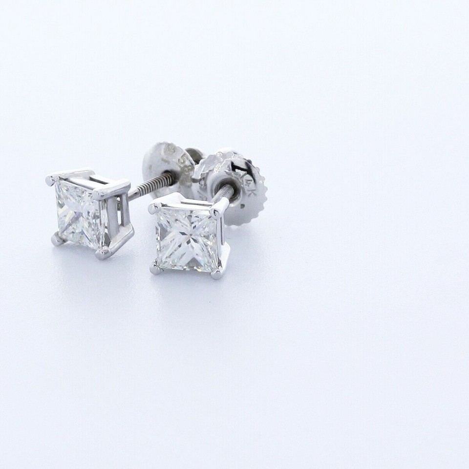 - Princess Diamond Earrings Stud White Gold 14k Fine Earrings,