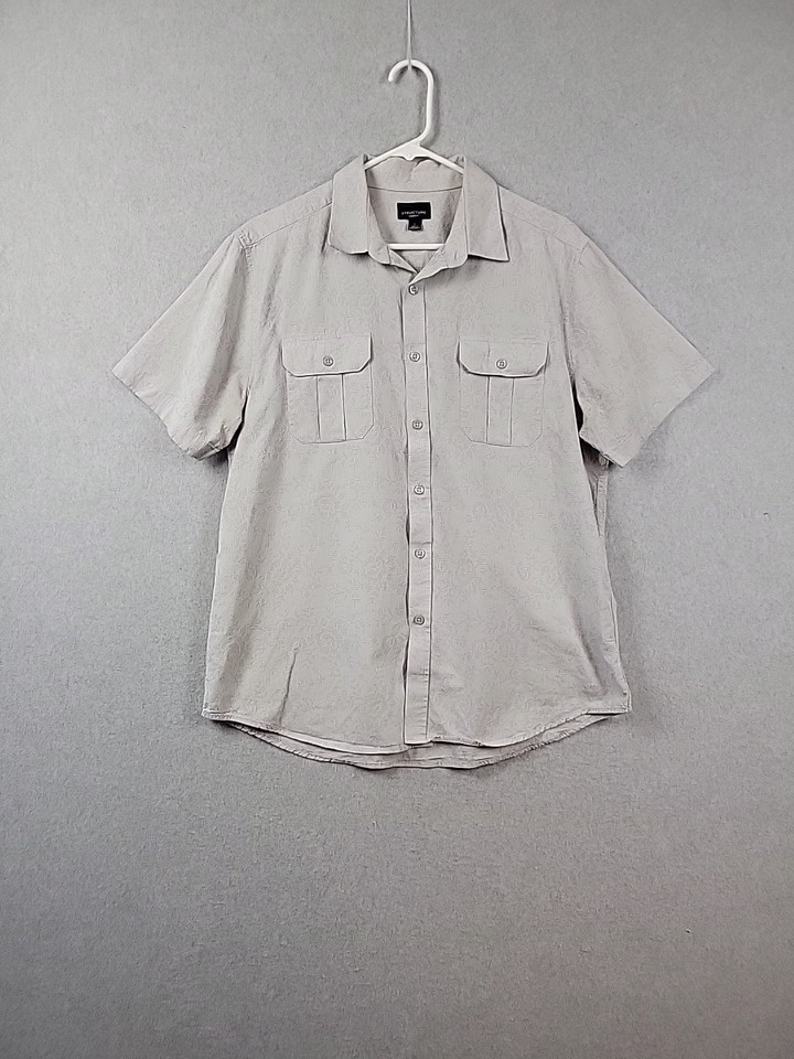 Structure Modern Fit 100% Cotton Gray Floral SS Button Up Shirt Men's Large