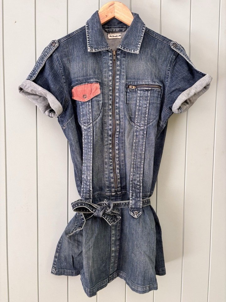 WRANGLER Ladies Dress Size M (10-12) Vintage 90’s Denim Mini Logo Waist Tie