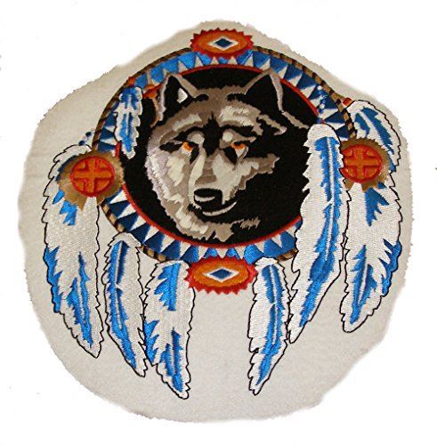 WHITE WOLF DREAM CATCHER FEATHER NATIVE AMERICAN LARGE SIZE PATCH INDIAN TRIBAL