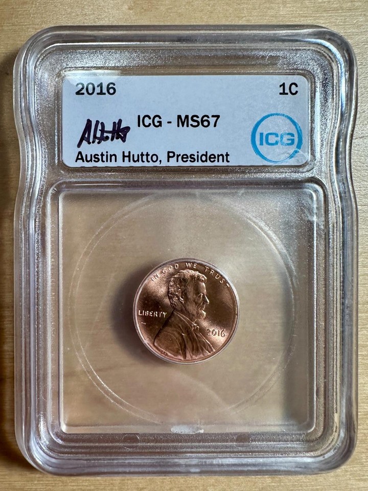 2016 Lincoln Cent ICG MS 67 RD - GRADE RARITY - White Label w/ Hutto Auto. #272