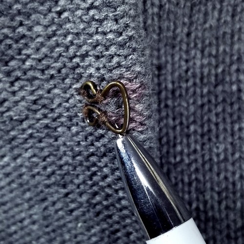 “It is pre-owned with light pilling, discoloration under a clasp, and a slightly misshapen shoulder ”... Read moreabout condition