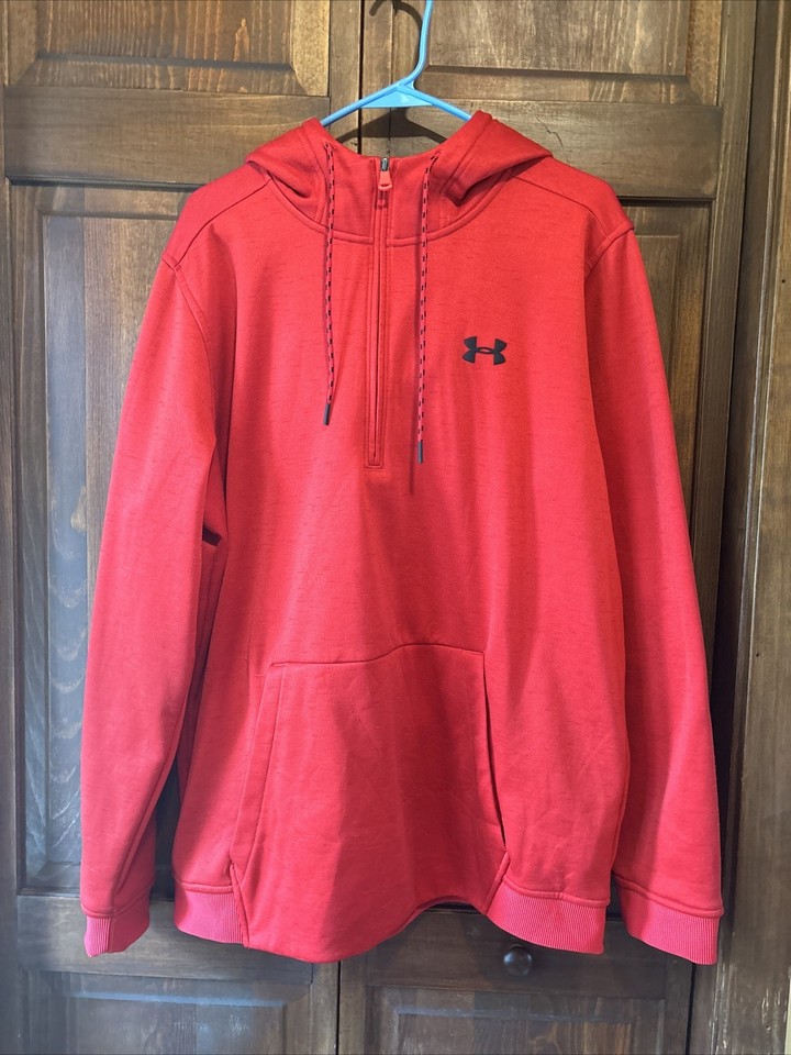 Mens Under Armour Coldgear Hoodie Sz XL Red/Black Trim
