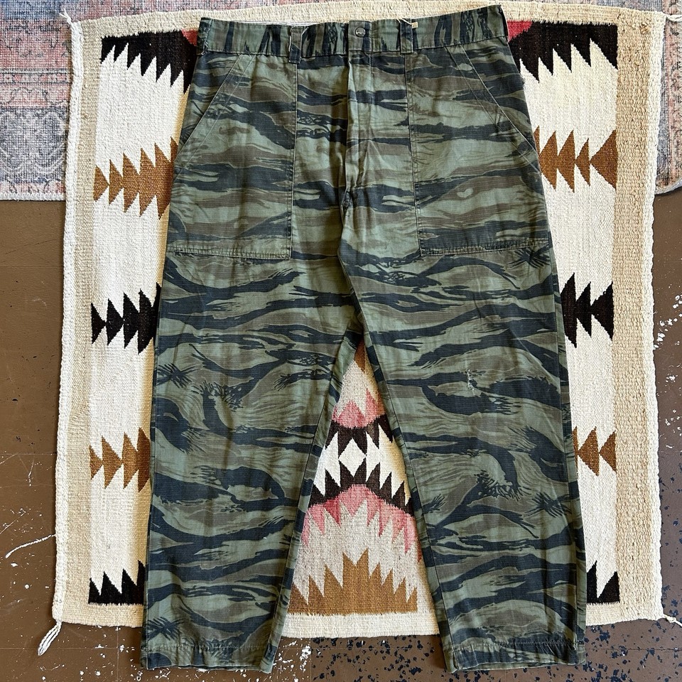 Vintage 1960s Chief Ripstop Cotton Tiger Stripe Camo Fatigue Hunting Pants Sz 40