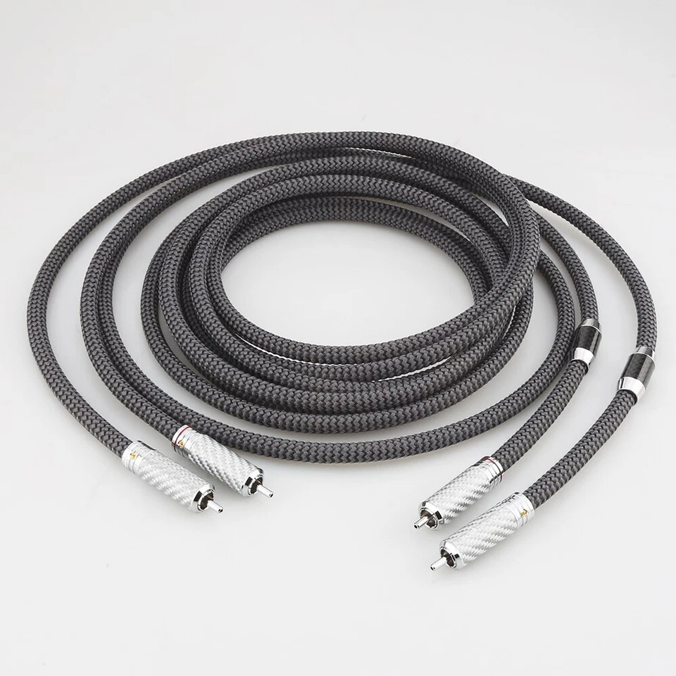 Pair Audiophile HiFi OCC Silver Plated Cable Carbon Fiber RCA Interconnect Cable