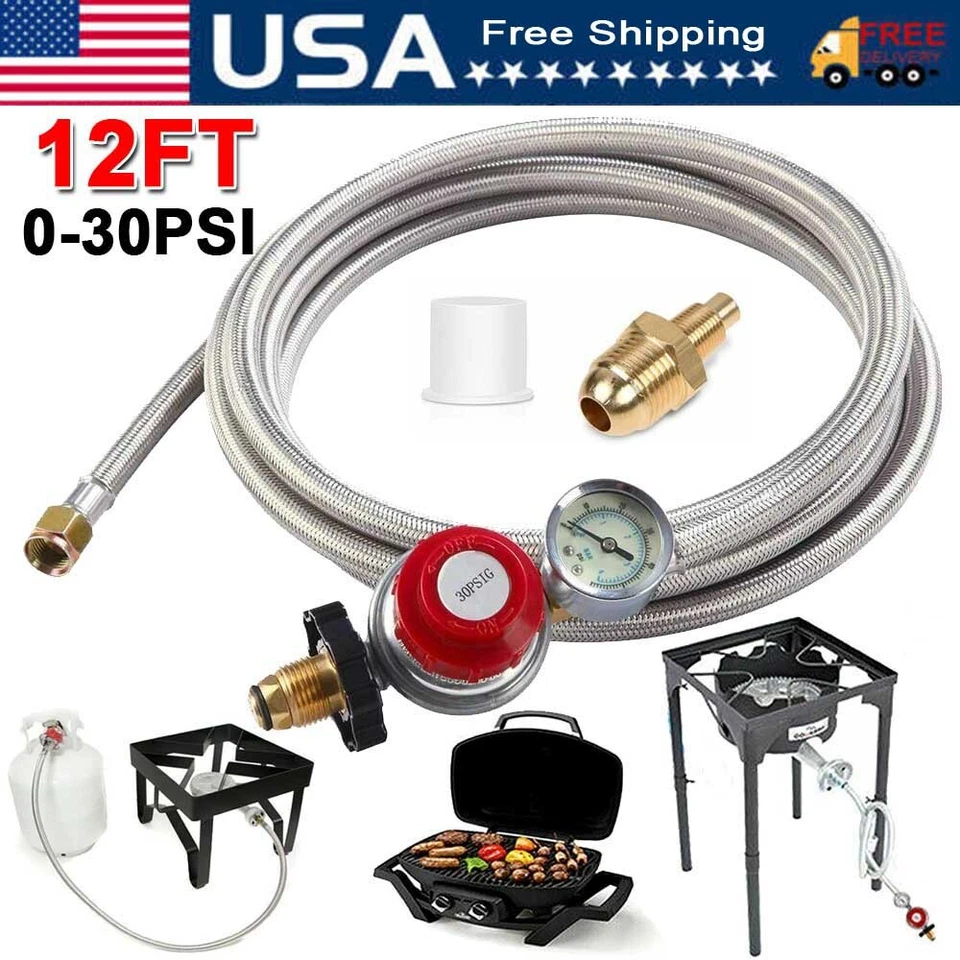 High Pressure Propane Regulator 12FT Braided Hose 30-PSI High Flow with Gauge