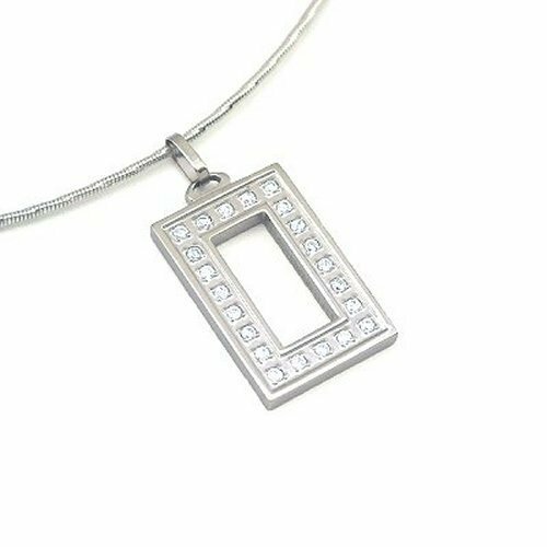 NL054 Bausch K Stainless Steel CZ Rectangular Pendant Chain Necklace New
