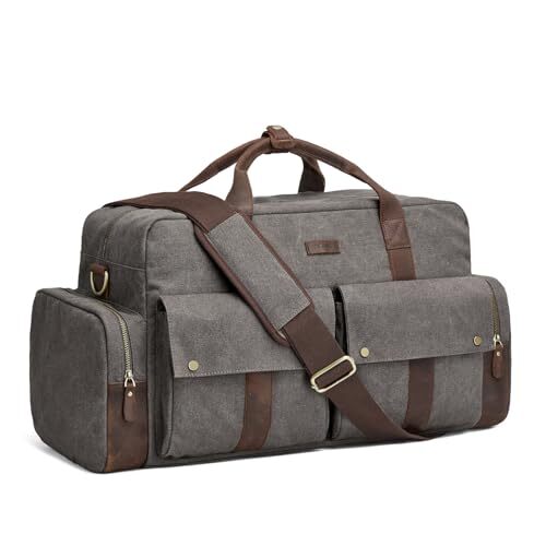 Duffle Bag for Travel Canvas Duffel Bag Carry on Leather Trim Overnight Grey