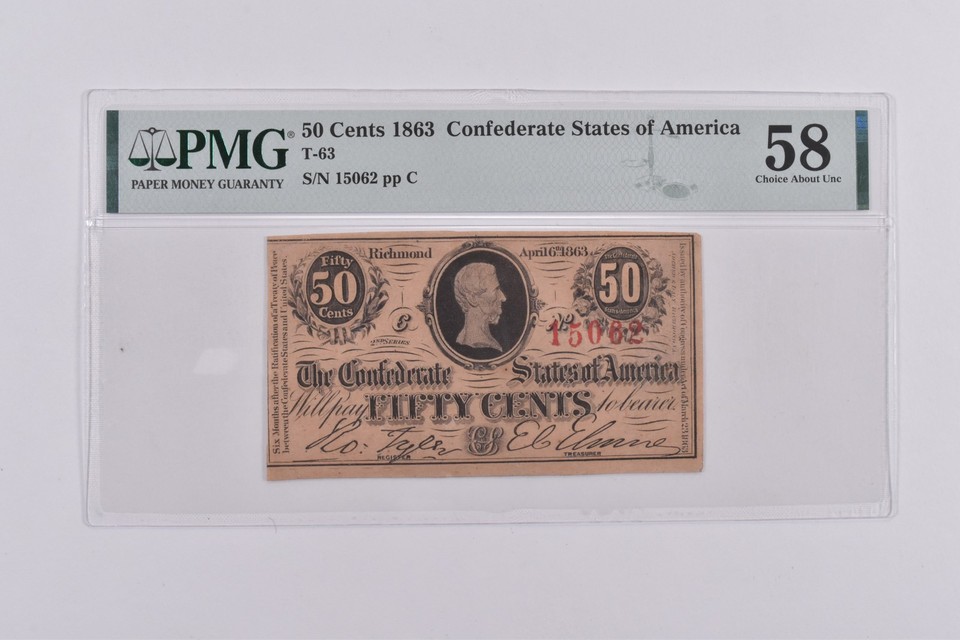 1863 50 Cents Confederate States Of America 58 Choice About Unc PMG