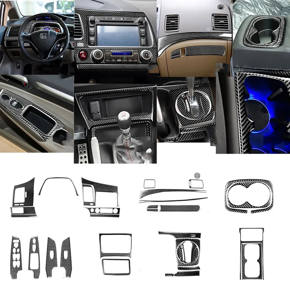 33Pc Carbon Fiber Interior Full Dashboard Cover Trim For Honda Civic 8th 2006-11