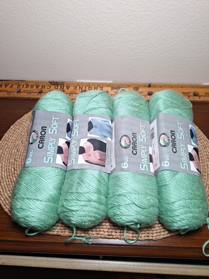 Lot of 4: Caron Simply Soft Yarn Sage Green 9705 , Full 6 oz Skeins Acrylic