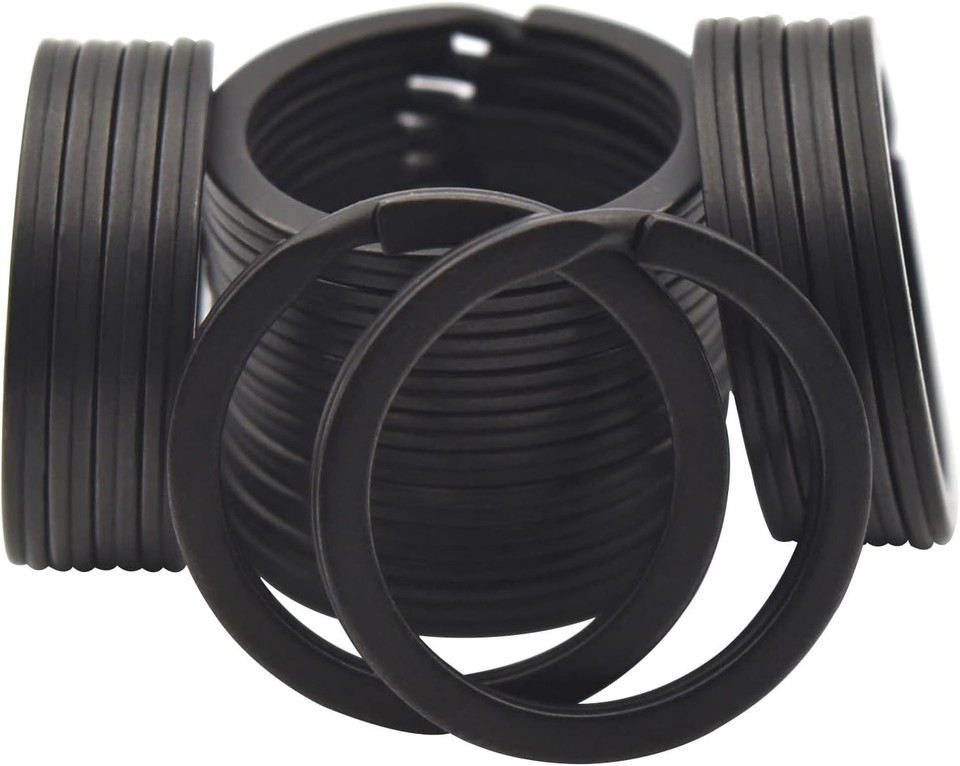 20 Pack Key Ring Keychain 1 Inch 25mm Diameter Metal Flat Split Black