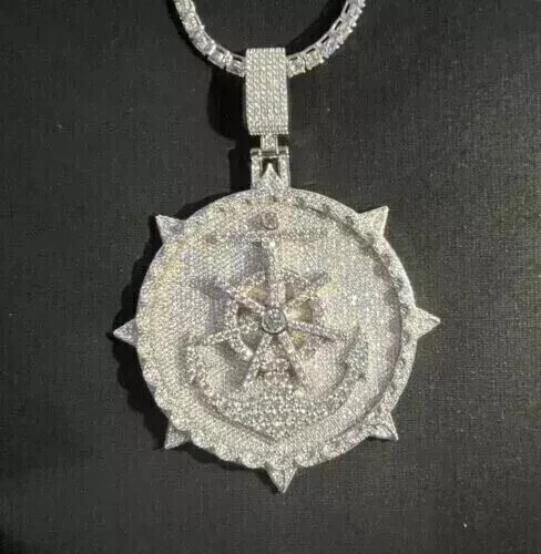 8CT Round Cut Diamond Lab Created Men's Hip Hop 2" Pendant 14K White Gold Plated